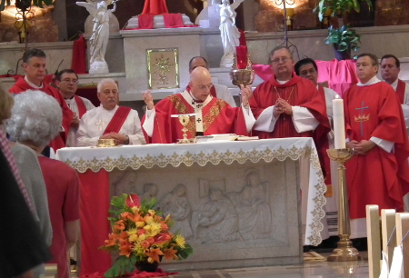 Šv. Mišias celebravo Čikagos arkivyskupas kardinolas Francis George, OMI (k.) Koncelebrantai: vyskupas Andrew Wypych; svečias iš Italijos – Marijonų ordino gen. vikaras kun. Joseph Roesch, MIC; marijonų Lietuvos Šv. Jurgio provincijos viceprovincijolas kun. Tomas Miliauskas (Marijampolė, Lietuva), MIC, PhD; JAV marijonų provincijolas Anthony B.Pizzo, OSA; Švenčiausios Mergelės Marijos Nekalto prasidėjimo marijonų kongregacijos provincijolas tėvas Kazimierz Chwalek, MIC, Stockbridge, MA. Šv. Mišių apeigose dalyvavo diakonas Vitas Paškauskas, Pal. Jurgio Matulaičio misijos Lemonte, PLC, kun. Antanas Saulaitis, kviestiniai kunigai iš Lietuvos Vilkaviškio vyskupijios, Marianapolio, JAV ir kt.