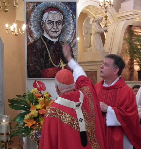 Nuotr.: Pal. Jurgio Matulaičio portretą -mozaiką šventina kardinolas Francis George, OMI ir Marijonų ordino gen. vikaras kun. Joseph Roesch, MIC