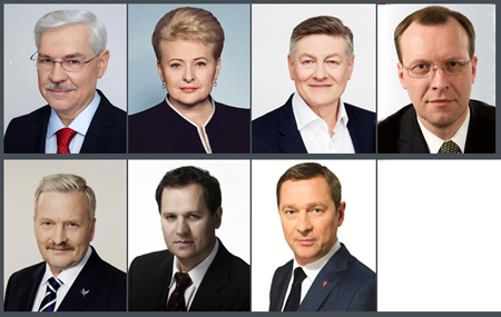 Nuotr.: I e.(iš kairės) – Zigmantas Balčytis, Dalia Grybauskaitė, Artūras Paulauskas, Naglis Puteikis, II e. – Bronis Ropė, Valdemaras Tamoševskis, Artūras Zuokas