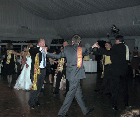 Vestuvės vyko viešbutyje the Westin Chicago Northwest. Iškilmių pradžioje jaunieji su būriu draugų šoko išeivijoje tapusia tradicinę ,,Rezginėlę”, kurią svečiai, o jų buvo apie tris šimtus, sutiko gausiais plojimais. Vėliau buvo pašoktas tradicinis jaunųjų valsas  (nuotr. apačioje)į kurį įsijungė ir jų tėvai.