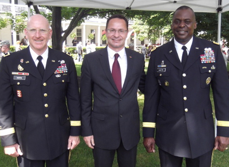Lietuvos ambasadorius JAV Žygimantas Pavilionis birželio 10 d. elitiniame JAV sausumos pajėgų apmokymų centre – JAV kariuomenės karo kolegijoje (US Army War College) – Pensilvanijos valstijos Carlisle mieste susitiko su kolegijos vadovu generolu majoru Gregg F. Martin (nuotraukoje iš kairės) bei ilgamečiu JAV bei tarptautinių pajėgų vadovu Irake, dabartiniu JAV kariuomenes vado pavaduotoju generolu Lloyd J. Austin III (nuotraukoje – iš dešinės). Susitikimas įvyko Lietuvos ambasadoriui dalyvaujant iškilmingame JAV Carlisle karo kolegijos 2012 metų karininkų laidos diplomų įteikime.