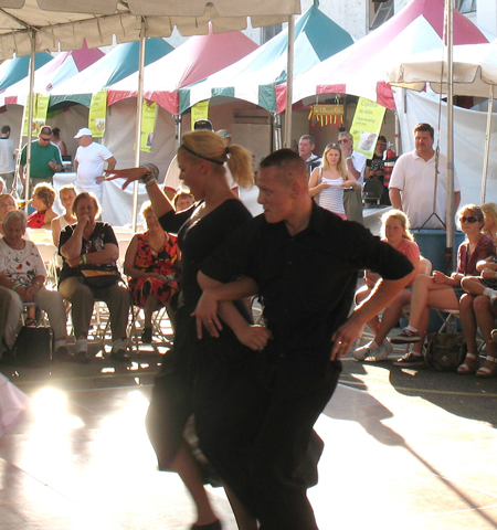 Ilgainiui į „Lietuvių dienas“ pakoncertuoti savo tautiečiams už Atlanto vyko vis daugiau gerai žinomų tradicinio ir šiuolaikinio žanro atlikėjų iš Lietuvos – per pastaruosius 10 metų minėto festivalio svečiai Los Angeles girdėjo ir matė Vytautą Kernagį, Virgį Stakėną, Romą Dambrauską, tautinių šokių, kaimiškos muzikos ir roko grupes „Saulė“, „Joldija“, „Balius“, „Biplan“. Išimtimi netapo ir ką tik prabėgęs šių metų festivalis, kuriame galbūt nebuvo tiek daug žmonių, kiek esame įpratę matyti (kai kuriais, pavyzdžiui 2006-aisias į šią šventę atkeliavo iki 8 tūkstančių svečių) – ko gero, dauguma JAV gyvenančių lietuvių vietoj Los Angeles šiemet pasirinko Bostone liepos mėnesį vykusią kas ketverius metus rengiamą išeivijos šokių šventę, visgi spalio 6-7 dienomis sugužėjusiems į vos kelių mylių atstumu nuo garsiojo Hollywood įsikūrusią lietuvių „teritoriją“ liūdna tikrai nebuvo. Tuoj po iškilmingo šventės atidarymo vius nustebino keliaujančių kunigų iš Lietuvos trio, nuo pat šeštadienio rytmečio visus susirinkusius linksmino iš Indianos atvykusi kaimo kapela „Biru-Bar“, chorinės muzikos mėgėjus nudžiugino lietuviškos sudėties oktetas iš Los Angeles (CA) „Tolimi Aidai“, šokių gerbėjus prikaustė „Dance Duo“ (nuotr. viršuje) atstovai iš Čikagos bei vietinė lietuvių liaudies šokių grupė LB ‚Spindulys“, kurio nariai dalyvavo visose iki šiol organizuotose „Lietuvių dienose“.