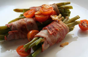 Ankštinės pupelės, keptos su rūkyta šonine