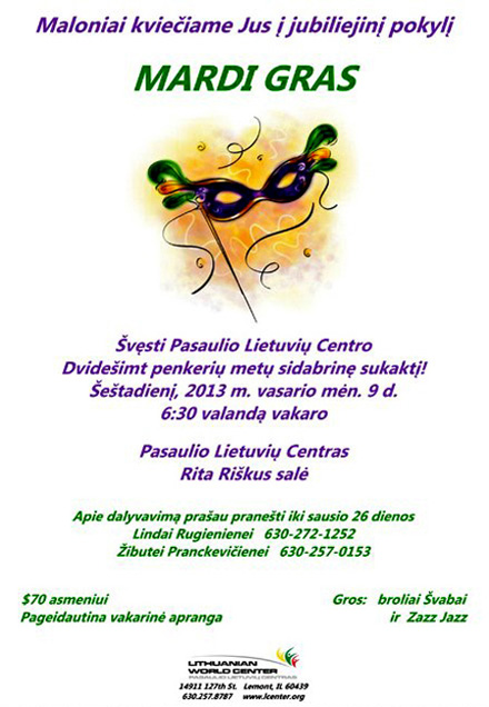 •    Čikaga. 2013 m. vasario 16 d., 18:00 val. Lietuvių jaunimo centras.