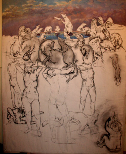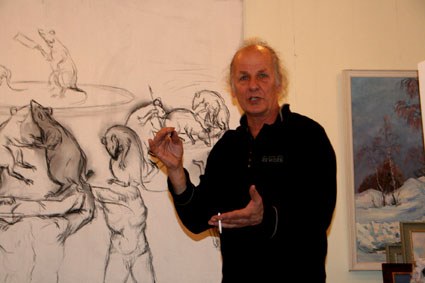 Tapytojas Rimantas Radišauskas prie naujo paveikslo DU PASAULIAI eskizo