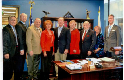 Nuotr. (iš kairės): AivarsJerumanis, Jonas Šepikas, Vytas černius, Angelė Nelsienė (exec.V.P.), kongresmenas Adam Schiff, Dzintra Švarcs, Valdis Pavlovskis (BAFL prezidentas), Marytė Šepikaitė ir Linas Udrys.