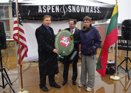 Nuotraukose: (iš kairės) Garbės konsulas J.V.Prunskis, ambasadorius Ž.Pavilionis ir Aspeno miesto meras M.Ireland