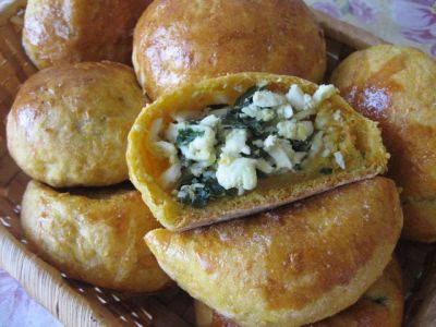 Senovėje šiam įdarui pamerkdavo svogūnų ir išaugindavo svogūnlaiškių. Dabar jų galima nusipirkti maisto prekių parduotuvėse. Įdarui svogūnlaiškius smulkiai supjaustyti, keptuvėje įkaitinti sviestą ir jame šiek tiek (1-2 min.) pakepinti svogūnlaiškius. Virtus kiaušinius smulkiai sukapoti, suberti į keptuvę su svogūnlaiškiais, pagardinti druska, pipirais ir išmaišyti.