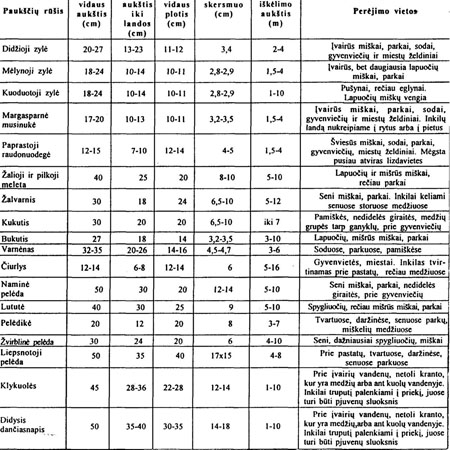 Inkilų išmatavimų lentelė pagal Saliamoną Paltanavičių