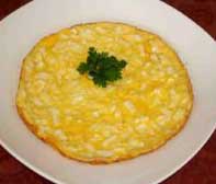 Česnaką supjaustyti lakšteliais ir pakepinti svieste, supilti kiaušinius, išplaktus su vynu, druska, muskatų riešutais ir kepti kaip omletą. Patiekti su konservuotais vaisiais.