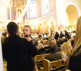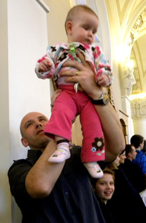 Maloniai nuteikia į bažnyčią atsilankantys jauni žmonės su savo atžalomis. Žmonės grįžta prie Dievo.