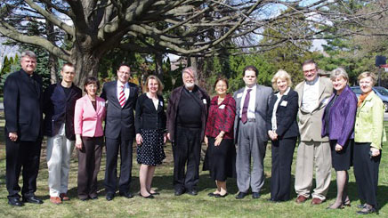 Iš kairės: prelatas Edmundas J. Putrimas, Tomas Mackevičius, Daina Čyvienė, LR Ambasadorius JAV Žygimantas Pavilionis, Grasilda Reinytė Petkienė, kun. Antanas Saulaitis SJ, prof. dr. Aldona Lingertaitienė, LR generalinis konsulas Čikagoje Marijus Gudynas, ambasadorė ypatingiems pavedimams Gintė Damušytė, kun. Valdas Aušra, Rita Čyvaitė-Kliorienė ir Ramunė Kubiliūtė.