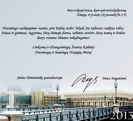 Sveikiname su šv.Kalėdom ir atskubančiais Naujais 2014 Metais . Lai Kūrėjo sūnaus atėjimo į Žemę šventė mums visiems dovanos stebuklingas artumo ir meilės akimirkas . Suteiks stiprybės pasitikus Naujuosius būti truputį ištvermingesniems, pakantesniems ir išmintingai džiaugtis kiekviena Nauja Diena, kiekviena Laimės akimirka.
