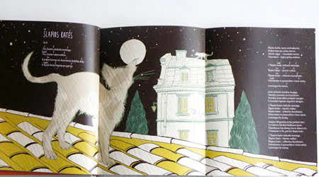 esame lietuviai, jau ilgą laiką gyvenantys Vokietijoje. Vaikystę praleidome Lietuvoje. Šį turtą labai branginame. Knygelės idėja gimė 2013m. vasarą, ieškant prasmingos dizaino studijų užbaigiamojo darbo temos. Nutarėme sujungti abiejų veiklas ir mintis į vieną kūrinį. Kartu, vienas kitą papildydami, radome temas ir motyvus. Tada bardas Karolis Špinkis sukūrė daineles ir pasakas, o grafikos dizainerė ir iliustratorė Indrė Bergner jas iliustravo ir sumaketavo knygą. Knygelę atspausdinome 1000 vnt. tiražu. Šį rudenį ją pristatėme kartu su Karolio koncertais keliuose Lietuvos miestuose: festivalyje ,,Tai aš” Vilniuje, koncertėliuose vaikams Šiauliuose, Utenoje, Zarasuose, Visagine… Šiuo metu keliaujame su knygute ir Karolio dainomis po Vokietijos lietuvių bendruomenes. Greitu laiku planuojame apsilankyti ir kitų šalių lietuvių bendruomenėse. Taip pamažu ir keliauja knygelė po pasaulį:)