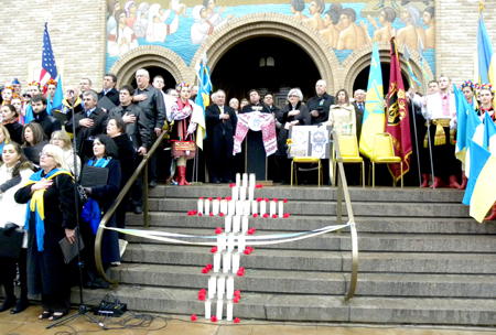 Mitingo pradžiai ir pabaigai ukrainiečių choras, maloniai suderintais balsais, pagiedojo JAV ir Ukrainos himnus, keleta dainų patriotine tematika.