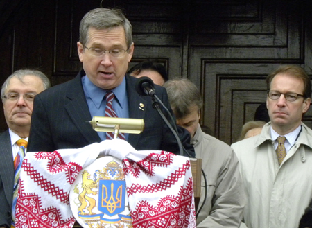 Kreipdamasis į susirinkusius, senatorius Mark Kirk sakė: „Amerika yra galybė ne dėl ekonomikos ir ne dėl karinės galios, o todėl, kad ji yra stipriausia kada nors suformuota jėga, kovojanti už žmogaus orumą.“ Politikas patikino mitingo dalyvius, jog JAV palaikymas Ukrainai tik stiprės bei sakė tikįs pergale prieš Putiną.