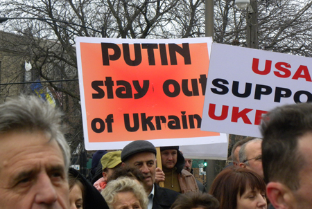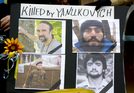 Protestas pareikalavo daugiau nei šimto protestuotojų gyvybių, o vėliau Rusija okupavo dalį Ukrainos teritorijos bei aktyviai remia teroristinę separatistinę veiklą šalies rytuose. Karinė agresija prieš Ukrainą jau pareikalavo tūkstančių gyvybių. Mitingo dalyviai prašė JAV valdžios atstovų ir demokratinio pasaulio lyderių stabdyti Rusijos agresiją, bei teikti paramą ginklais už šalies suverenitetą ir teritorinį vientisumą kovojančiai Ukrainai.