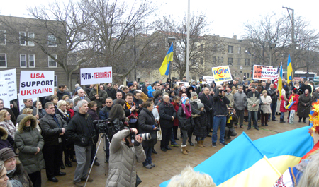 Praėjusių metų gruodį į Čikagos ,,Ukrainiečių kaimelį” (Ukrainian Village Chicago), kuriame tankiausiai gyvena išeiviai iš Ukrainos, rinkomės į ,,EuroMaidanui” skirtą mitingą. Aikštė prie ukrainiečių kultūros centro buvo pilnutėlė – susirinko apie pusę tūkstančio ukrainiečių ir juos palaikančiųjų iš Gruzijos, Lenkijos, Estijos, Latvijos, Lietuvosir kt. bendruomenių, gyvuojančių Čikagoje ir jos priemiesčiuose. Lietuviams atstovavome tik trys: adv. Saulius Kuprys (nuotr.: viduryje), Šaulių sąjungos išeivijoje narys ErnestasLukoševičius ir biciulyste.com vyr. redatorė Ligija Tautkuvienė.