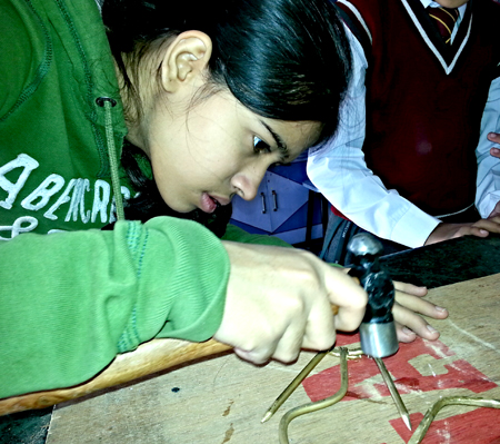 Kryželį gaminančios merginos suprato, kad kalvio darbas išties sunkus ir gailėjosi, kad dar