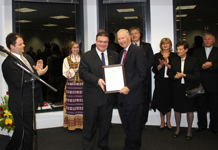 3. Užsienio reikalų ministras L. Linkevičius įteikia padėką architektui R. Griškeliui,