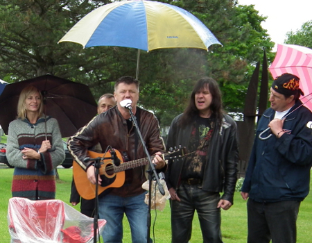 Nuotr.: (iš kairės) I e. – dainuoja Rimas Pažemeckas (su gitara), Artūras Blažukas ir Ernestas Lukoševičius.
