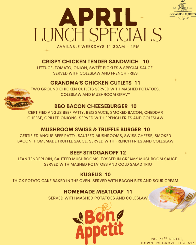 Delicious, homemade, fast, and affordable!Take a break and treat yourself to our lunch specials.Available for dine-in and carry out.