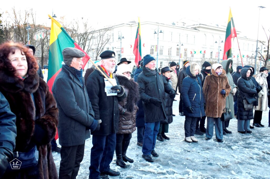 didvyriškai istorijai. Todėl negęstanti plazdėjo Lietuvos valstybingumo atmintis ir gyvastis. Štai iš kur tas noras mylėti, ginti, gerbti ir aukoti gyvybę.“ Vedėjas pabrėžė, kad šiandien, stovėdami Lukiškių aikštėje, bijome prisipažinti, kad juos, paaukojusius savo gyvybes dėl Lietuvos laisvės, buvome pamiršę ir šioje valstybės aikštėje, praėjus 35-iems metams, nesugebėjome pastatyti jų aukai verto paminklo. Perskaitė Lietuvos Respublikos Seimo 2020 m. birželio 29 d. priimtą įstatymą – Lukiškių aikštėje pastatyti memorialą, žuvusiems už Lietuvos laisvę su valstybės simboliu – Vyčiu. Paprašęs paduoti vienas kitam ranką, pažiūrėti į akis ir sugiedoti Lietuvos himną. Po to tylos minute pagerbti tuos, kurie per visus amžius kovojo dėl Lietuvos laisvės, jos išlikimo ir valstybingumo. Liepė nepamiršti ir brolių ukrainiečių, kurie